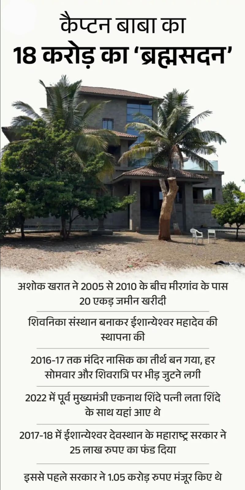महाराष्ट्र में नासिक से करीब 65 किमी दूर शिरडी हाईवे पर मीरगांव है। यहीं प्रसिद्ध ईशान्येश्वर महादेव मंदिर है। 18 मार्च को स्वयंभू बाबा अशोक खरात के 58 अश्लील वीडियो वायरल होने के बाद ये मंदिर और गांव चर्चा में आ गए।खरात ने 2010 में ईशान्येश्वर मंदिर बनवाया था। करीब 3 एकड़ में फैले इस मंदिर में कभी नेता और अफसर आते थे, अब सन्नाटा है। 20 एकड़ में बना फार्महाउस पुलिस की निगरानी में है। करीब 18 करोड़ रुपए का विला ‘ब्रह्मसदन’ सील हो चुका है।