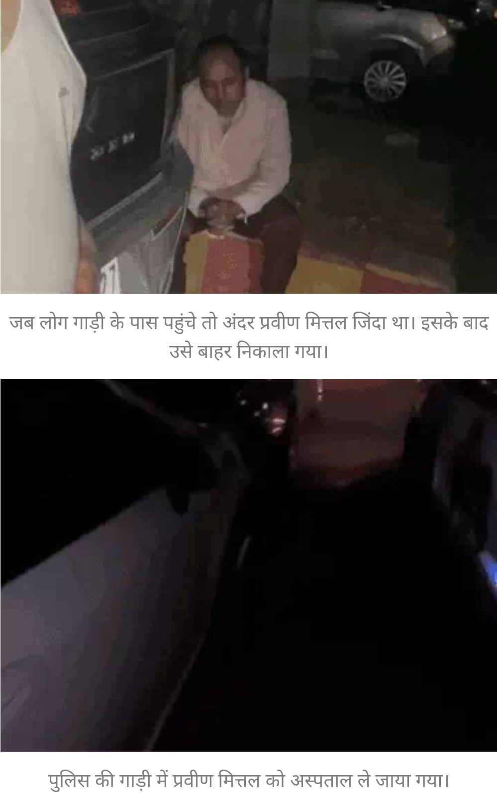 गाड़ी में उल्टियां की हुई थी: अंदर सभी ने उल्टी की हुई थी। उन्होंने प्रवीण मित्तल को बाहर निकाल लिया। वो कांप रहा था। उसने भी जहर खाया हुआ था। हमने उसे पानी पिलाने की कोशिश की।उन्होंने बताया, साथ वाली सीट पर उसकी बुजुर्ग मां थी। प्रवीण का बेटा, प्रवीण की पत्नी, पिता और 2 बेटियां थीं। प्रवीण ने बताया कि हमारे सिर पर कर्जा है। हमने सुसाइड कर लिया है।