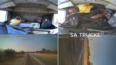 ट्रक में अंदर और बाहर दोनों तरफ डैशकैम लगा होता है। जिससे सड़क और अंदर सो रहे ड्राइवर दोनों का नजारा साफ दिखाई देता है। वीडियो में शुरू के एक मिनट तक ट्रक बिल्कुल सही तरह से हाईवे पर चल रही होती है। लेकिन फिर ट्रक के पहिए स्टीयरिंग न कंट्रोल करने के चलते रोड से उतर जाते हैं। सड़क से उतरते ही ट्रक ड्राइवर की नींद खुलती है।
