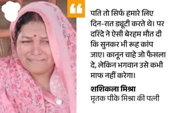 कौन जानता था कि एक दरिंदे की नजर इस परिवार की खुशियों पर पड़ जाएगी। शशिकला बोलीं- पलभर में हंसता-खेलता घर उजाड़ दिया। हमारे सपने, हमारी खुशियां सब खत्म हो गईं। अब वो नहीं रहे तो जिंदगी कभी पहले जैसी नहीं होगी। बच्चों के भविष्य, उनकी पढ़ाई, सबके सपने उन्हीं के साथ चले गए।