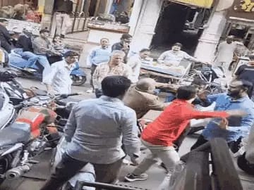 इंदौर के सराफा बाजार में ग्राहकी को लेकर एक दुकानदार और एजेंट के बीच जमकर लात-घूंसे चले। इस घटना का वीडियो लोगों ने बना लिया, जो बाद में सोशल मीडिया पर वायरल हो गया। वीडियो वायरल होने के बाद पुलिस ने दोनों के खिलाफ प्रतिबंधात्मक कार्रवाई की।