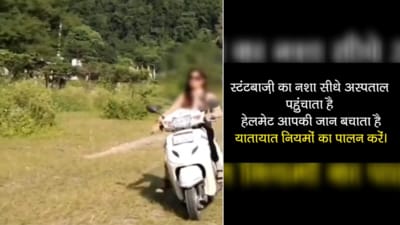 Scooty Stunt Viral Video: उत्तराखंड पुलिस ने एक वीडियो साझा कर रीलबाजी के खतरों पर चेतावनी दी है। इसमें एक महिला वादियों के बीच स्कूटी चलाते हुए स्टंट करने की कोशिश करती है और गिर जाती है। वीडियो के जरिए संदेश दिया गया- यातायात नियमों का पालन करें और स्टंटबाजी न करें