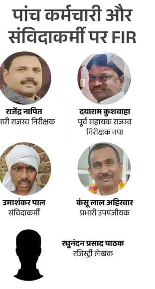 सीएसपी बोले- मामले में अभी 5 पर एफआईआर हुई सीएसपी अरुण कुमार मिश्रा ने बताया कि इस मामले में दोषी पाए गए नगर पालिका के राजस्व प्रभारी राजेंद्र नापित, तत्कालीन राजस्व प्रभारी दयाराम कुशवाहा, सहायक संविदा कर्मी उमाशंकर पाल, प्रभारी उपपंजीयक कंसू लाल अहिरवार और रजिस्ट्री लेखक रघुनंदन प्रसाद पाठक के खिलाफ कोतवाली थाना में भारतीय न्याय संहिता 2023 की धारा 318(4) के तहत मामला दर्ज किया गया है।