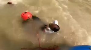 राफ्ट में सवार शख्स ने फेंकी रस्सी
