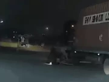 वीडियो में दिख रहा है कि कंटेनर अचानक टर्न लेते समय पास से गुजर रही बाइक को चपेट में ले लेता है। कंटेनर ने बाइक को पूरी तरह रौंद दिया, जबकि दंपती सड़क पर गिर गए। गनीमत रही कि दोनों को गंभीर चोट नहीं आई।
