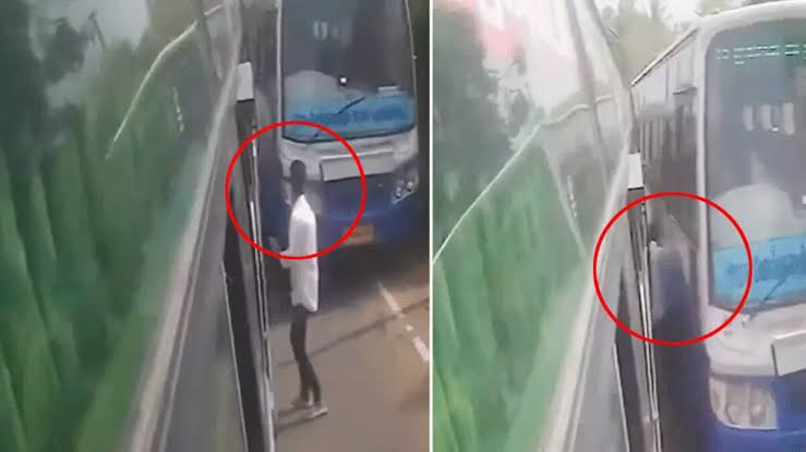 जिससे भरत दो बसों के बीच में फंस गया और संतुलन खो बैठा. ऐसे में वह जमीन पर गिर गया, लेकिन चमत्कारिक ढंग से मामूली खरोंचों के साथ बच गया. यह दुर्घटना निजी बस में लगे सीसीटीवी में कैद हो गई और अब वायरल हो गई है. अगर बस थोड़ा भी इधर-उधर होती तो उसकी जान चली जाती.