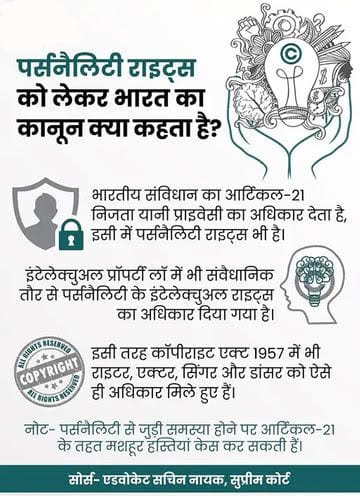 साल 2023 में कोर्ट ने अनिल कपूर की इमेज, वॉयस और उनके झकास कैचफ्रेज का गलत इस्तेमाल पर रोक लगाई थी। वहीं, नवंबर 2022 में अमिताभ बच्चन की पर्सनैलिटी और पब्लिसिटी राइट्स की भी सुरक्षा दी गई थी।