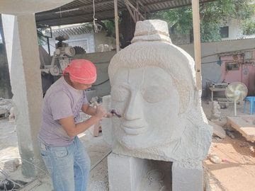 ग्वालियर में भगवान श्रीराम की मूर्ति को आकार देता मूर्तिकार