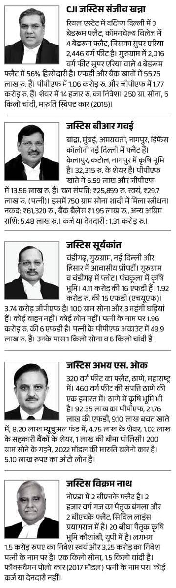 सुप्रीम कोर्ट के सीनियर जजों की संपत्ति का ब्योरा