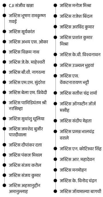 - इन 170 में से एससी से 7, एसटी से 5, ओबीसी से 21, अत्यंत पिछड़ा वर्ग से 7 हैं। इनमें 28 महिलाएं और 23 जज अल्पसंख्यक हैं। कॉलेजियम ने जो नाम हाईकोर्ट जज के लिए भेजे, उनमें 12 ऐसे हैं, जो किसी पूर्व या वर्तमान जज के परिजन हैं।