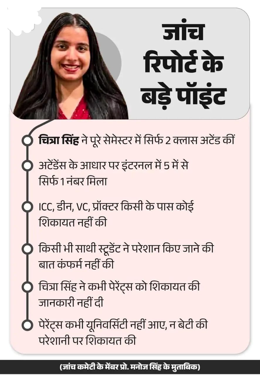 प्रोफेसर मनोज सिंह बताते हैं, ‘हमने डिपार्टमेंट के प्रोफेसर्स और चित्रा के साथ पढ़ने वाले स्टूडेंट्स से बात की। फैक्ट्स पर रिपोर्ट बनाई। उसके बिहेवियर और स्टडी को लेकर कई इश्यू थे। तीन इश्यू मौजूदा मुद्दे से जुड़ते हैं।