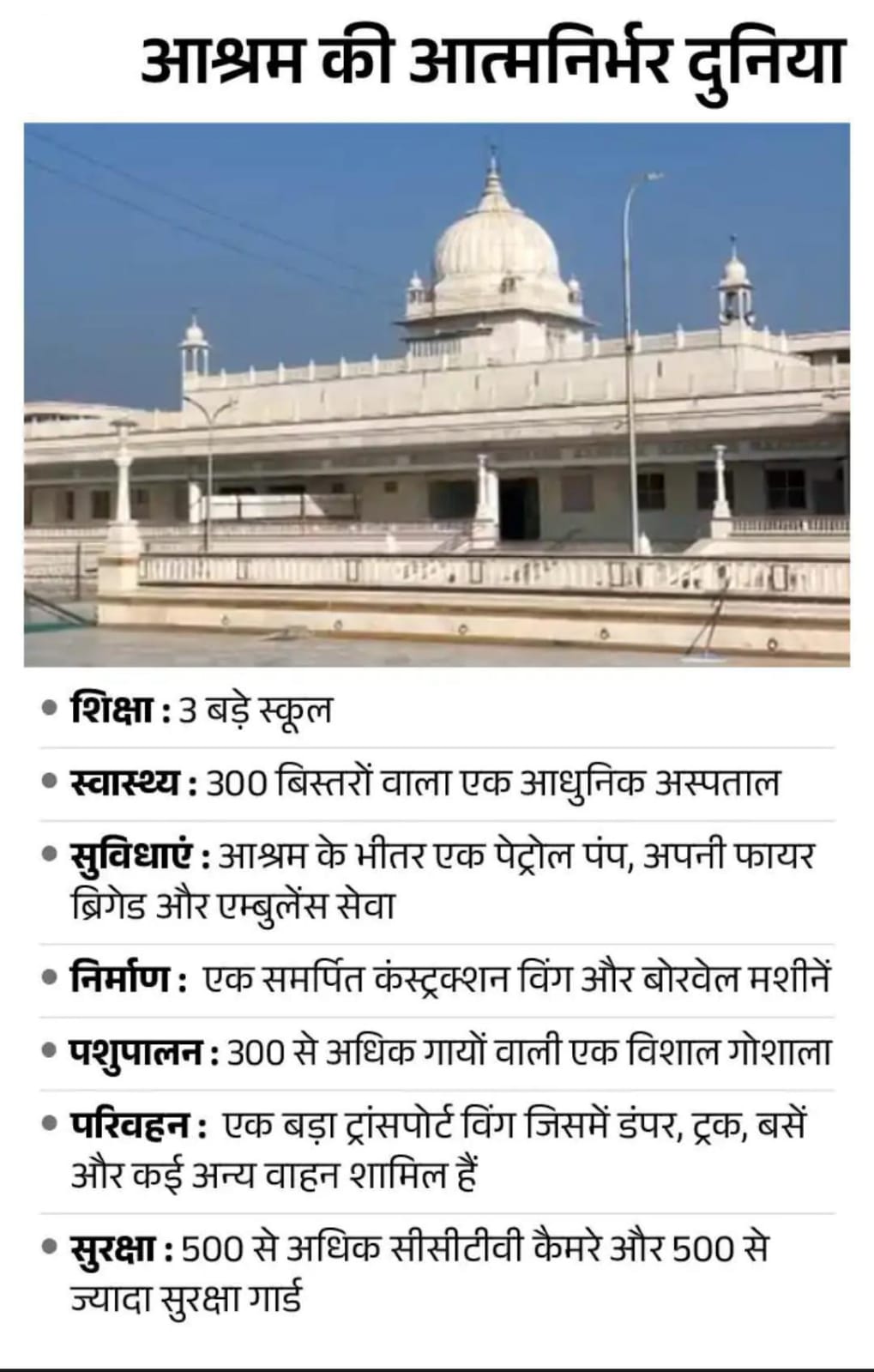 आश्रम का भव्य परिसर । पूरी बिल्डिंग संगमरमर से बनी हैं।