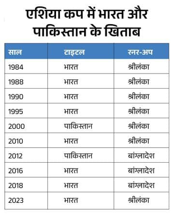पाकिस्तान ने 15 एडिशन में 2 ही बार टाइटल जीता था। टीम ने 2000 में श्रीलंका और 2012 में बांग्लादेश को फाइनल हराकर खिताब जीता। टीम 2022, 2014 और 1986 में रनर-अप भी रही, लेकिन कभी भारत से खिताबी भिड़ंत नहीं कर पाई। 41 साल पुराने टूर्नामेंट में इस बार 8 टीमों ने हिस्सा लिया और पहली बार ही दोनों चीर-प्रतिद्वंद्वी टीमों ने एक साथ खिताबी मुकाबले में जगह बनाई है।