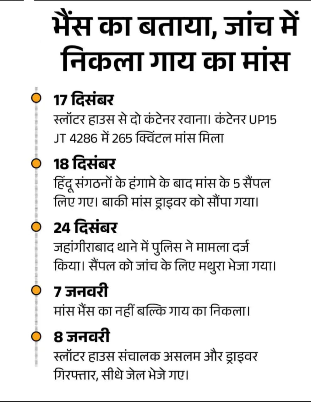 बीजेपी सरकार का पूरा सरकारी सिस्टम इस मामले को दबाने में लग गया। यानी पिछ 12 बजकर 49 बजे जहांगीराबाद थाने में एफआईआर दर्ज हुई। एफआईआर के बाद पुलिस ने स्लॉटर हाउस के संचालक असलम चमड़ा और कंटेनर के ड्राइवर शोएब को गिरफ्तार कर सीधे जेल भेज दिया। वो भी बिना कोई कोई पूछताछ किए।