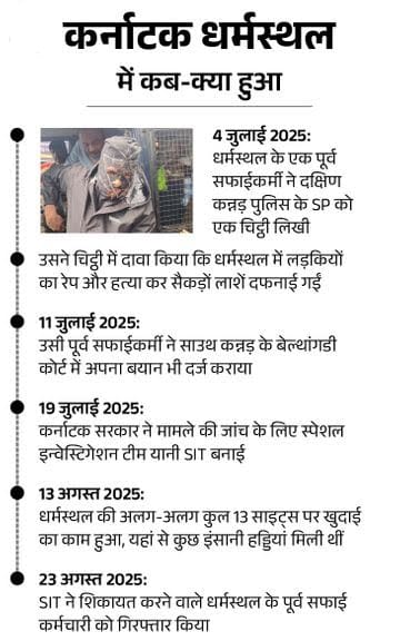 - 1998 से 2014 के बीच मंदिर में काम करता था। मैं अब आगे आ रहा हूं, क्योंकि पछतावा और पीड़ितों को न्याय दिलाने की भावना मुझे चैन से जीने नहीं दे रही। 1998 में धर्मस्थल के सुपरवाइजर ने पहली बार मुझे लाशों को चुपचाप निपटाने को कहा। जब मैंने इनकार किया तो मुझे बेरहमी से पीटा गया और परिवार को जान से मारने की धमकी दी गई