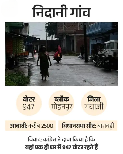 ‘बिहार में चुनाव आयोग का बड़ा फर्जीवाड़ा, जबरदस्त वोट चोरी का सबूत! पूरे बूथ के 947 वोट एक ही घर में! निदानी गांव, बोधगया (बूथ नं. 161, बाराचट्टी विधानसभा) में इलेक्शन कमीशन ने चमत्कार कर दिया। वोटर लिस्ट में 947 वोटर एक ही घर (मकान नंबर 6) में रहते हैं। निदानी में सैकड़ों घर और परिवार हैं, मगर लिस्ट में पूरा गांव एक काल्पनिक मकान में समा गया।’