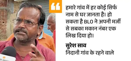 गांव के ही अनुज दावा करते हैं, ‘किसी ने कभी मकान नंबर पूछा ही नहीं। न वोटर लिस्ट में नाम जोड़ते हुए और न SIR के वक्त। गांव में 500 से ज्यादा घर हैं। सभी का नंबर एक कर दिया है।’