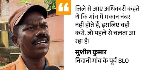 गांव में पता चला कि अरुण कुमार से पहले सुशील कुमार गांव में BLO थे। हमने सुशील से बात की। वे बताते हैं, ‘ऐसा नहीं है कि SIR में गलती की गई है। मैं BLO बना था, तब भी सबका मकान नंबर 6 था। कई साल से यही चलता आ रहा है।’