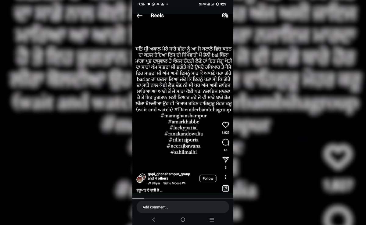 हरियाणा के दो कुख्यात गैंगस्टरों प्रभू दासुवाल और कौशल चौधरी ने सोशल मीडिया पर जग्गू भगवानपुरिया की मां की हत्या की जिम्मेदारी ली. आपको बता दें कि ये दोनों ही बंबीहा गैंग से जुड़े हुए हैं. पुलिस फिलहाल इस सोशल मीडिया पोस्ट की जांच कर रही है.