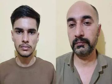 ये फोटो आरोपी बाप-बेटे की है। बेटे ने महिला पर कार चढ़ाई थी।