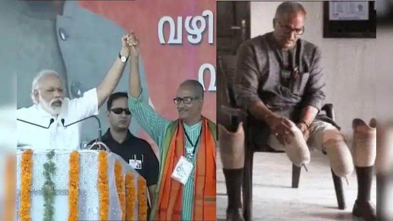 ‘मैं श्रीमान सदानंदनजी मास्टर से आपका परिचय कराना चाहता हूं. इनका कोई गुनाह नहीं था, वे भारत माता की जय बोलते थे. वे देश के गरीबों के लिए अच्छे रास्ते पर चलना चाहते थे. जब उन्होंने अपने विचारों के अनुसार, अच्छे काम करना चाहा तो इनके दोनों पैर काट दिए गए. आज वो आर्टिफिशियल पैर लगाकर सेवाभाव से केरल की जनता के लिए समर्पित हैं.’ इस स्टोरी को पढ़ते हुए आगे आप मई 2016 की वीडियो देखेंगे, जिसमें प्रधानमंत्री नरेंद्र मोदी, कासरगोड़ में एक जनसभा के दौरान कम्यूनिस्ट विचारधारा छोड़ भाजपा में आए सदानंदन मास्टर का परिचय देते हैं.
