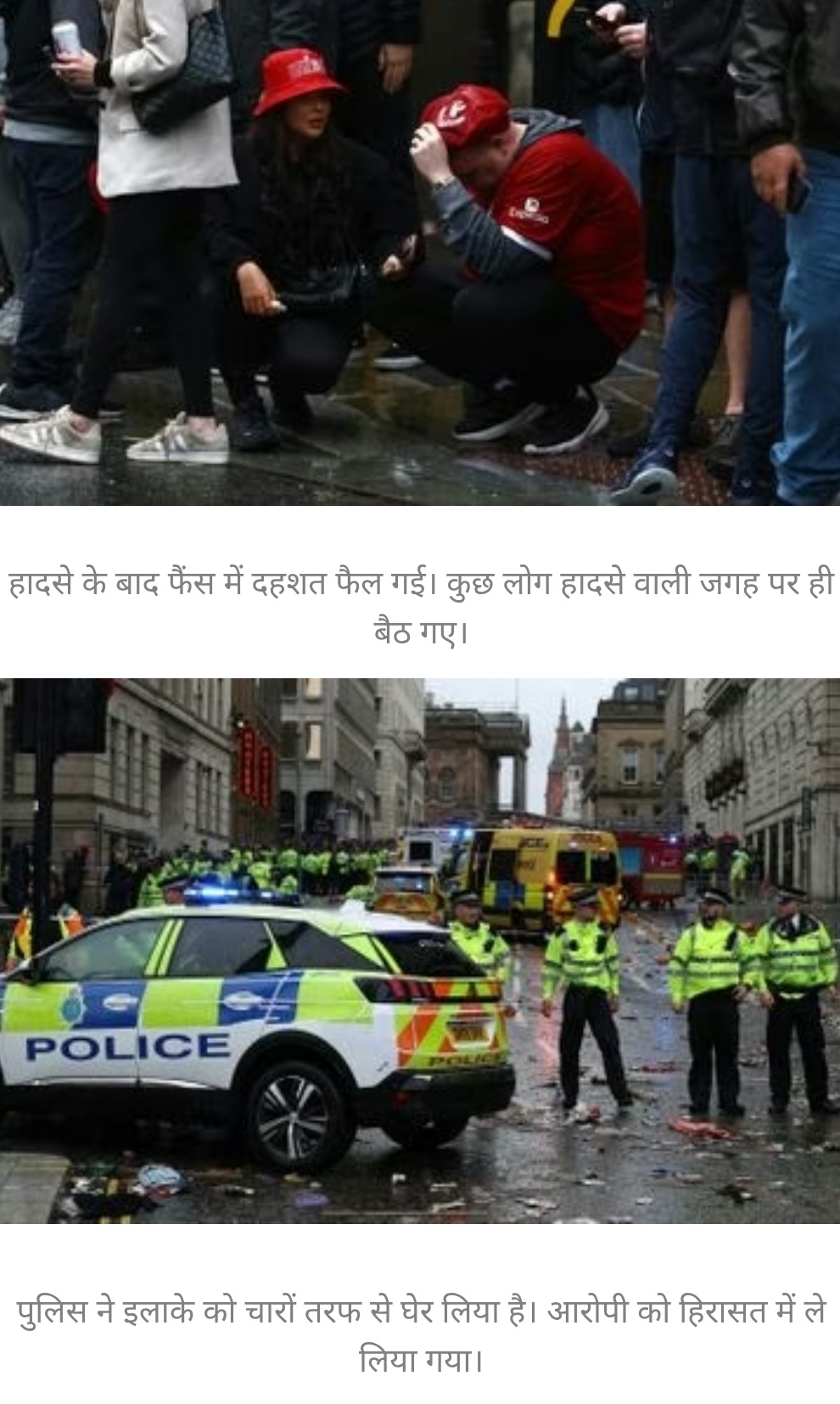 ये फैन्स लिवरपूल फुटबॉल क्लब की प्रीमियर लीग में जीत पर विक्ट्री परेड निकाल रहे थे। लोकल पुलिस के मुताबिक, सोमवार शाम स्थानीय समयानुसार करीब 6 बजे वाटर स्ट्रीट पर एक कार ने कई पैदल यात्रियों को टक्कर मारी। 53 साल के आरोपी को गिरफ्तार कर लिया गया है।
