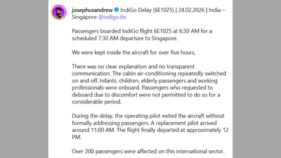 लाइफ कोच जोसेफस नाजारेल एंड्रयू ने ये वीडियो शेयर किया है। वो खुद इस फ्लाइट में थे। उनकी पोस्ट के मुताबिक 24 फरवरी की सुबह 7.20 पर सिंगापुर के लिए निकलने वाली फ्लाइट दोपहर करीब 12 बजे टेक ऑफ कर पाई।