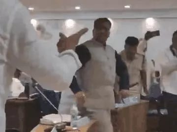 कर्नाटक में मीटिंग के दौरान कांग्रेस MLC और BJP MLA के बीच हाथापाई का वीडियो सामने आया।