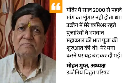 महाकाल को भांग श्रृंगार का उज्जैनिय विद्वत परिषद के अध्यक्ष मोहन गुप्त ने विरोध किया है।