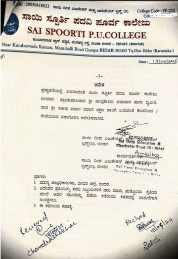 कर्नाटक के बीदर जिले के साई स्पूर्थी पीयू कॉलेज में 17 अप्रैल को एक स्टूडेंट ने जनेऊ उतारने से मना किया तो उसे एग्जाम में बैठने नहीं दिया गया। शनिवार को मामला सुर्खियों में आया और इसपर विवाद हुआ। अब मामले में प्रिंसिपल डॉ. चंद्रशेखर बिरादर और स्टाफ मेंबर सतीश पवार को सस्पेंड कर दिया है।