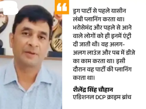 भोपाल के हाई प्रोफाइल ड्रग तस्करी के मामले में गिरफ्तार डीजे यासीन उर्फ मछली शहर में सबसे ज्यादा नाइट पार्टी ऑर्गेनाइज करता था। वह क्लब, लाउंज और पब में नशे के आदी युवक-युवतियों के साथ पार्टी की प्लानिंग करता था। इसके बाद शहर के आउटर में बने फार्म हाउस में पार्टी ऑर्गेनाइज होती थी। जहां सिर्फ पास धारकों को ही एंट्री दी जाती थी।