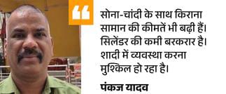 भोपाल के करोंद निवासी पंकज यादव के भाई की हाल ही में शादी हुई थी। अब वे चचेरी बहन की शादी की तैयारियों में जुटे हैं। उन्होंने बताया कि बजट के कारण कई चीजें कम की गईं। सोना-चांदी महंगा होने से बजट बिगड़ा है। गार्डन और खाने के बाद सबसे ज्यादा खर्च जेवर पर हो रहा है। भाई की शादी में कुल बजट 5 लाख रुपए तक बढ़ गया था।