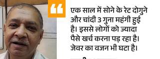 अग्रवाल ने बताया कि पहले 5 लाख में 2 तोला सोना और 1 किलो चांदी मिलती थी, लेकिन अब 1 तोला सोना और आधा किलो चांदी ही मिल रही है। वजन बढ़ाने पर बजट 5 लाख रुपए तक बढ़ रहा है। कई लोग मौजूदा बजट में ही ज्वेलरी बनवा रहे हैं।