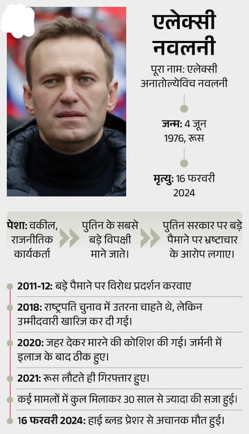 नवलनी की 16 फरवरी 2024 को आर्कटिक की एक जेल में मौत हो गई थी, वो यहां 19 साल की सजा काट रहे थे। वे सरकारी भ्रष्टाचार के खिलाफ आवाज उठाते थे और विरोध प्रदर्शन करते थे।