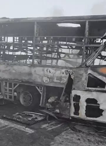 जलकर खाक हुई बस में फंसे हुए मानव अंग दिखाई दे रहे थे।