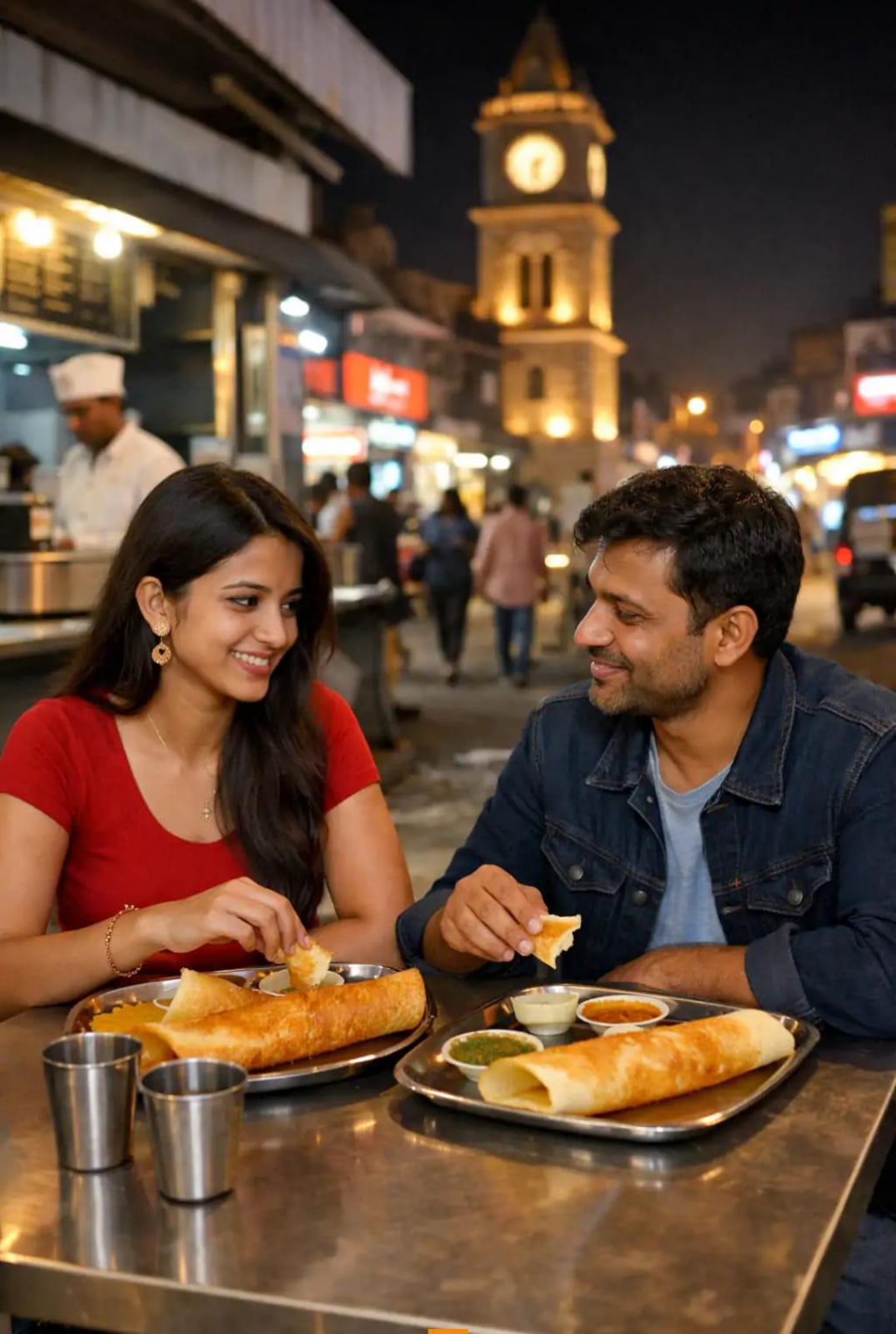 मैहर पहुंचने के बाद पीड़ित ने युवती के साथ डोसा खाया। (फोटो-एआई जेनरेटेड)