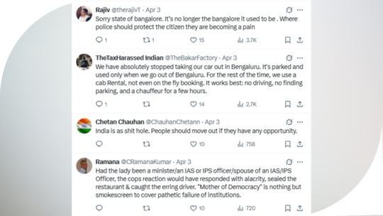 पुलिस अधिकारियों ने उसे कानूनी कार्रवाई करने के बजाय ₹2 लाख में “समझौता” करने का सुझाव दिया, जिससे यह स्पष्ट हो गया कि बिजनेस की रक्षा जस्टिस से ज्यादा जरूरी है। इस घटना के बावजूद, रेस्टोरेंट वैसे ही चलता रहा, बस वैलेट ड्राइवर गायब हो गए, और महिला अकेली लड़ रही है। @karnatakaportf ने आगे लिखा कि यह घटना बेंगलुरु के ढहते कस्टमर अधिकारों और कानून प्रवर्तन विफलताओं को उजागर करती है।