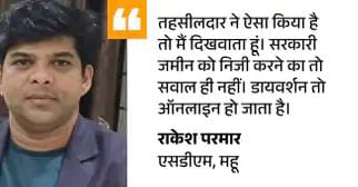 एसडीएम बोले – मामले की जांच करेंगे मामले में महू एसडीएम राकेश परमार का कहना है कि मामले की जांच कर दिखवाया जाएगा। ग्राम सांतैर निवासी मांगीलाल पिता राजाराम नाम का व्यक्ति है या नहीं ये देखना पड़ेगा, क्योंकि जिस नाम से आवेदन आया होगा वो होगा। जमीन सरकारी है मेरे संज्ञान में है।