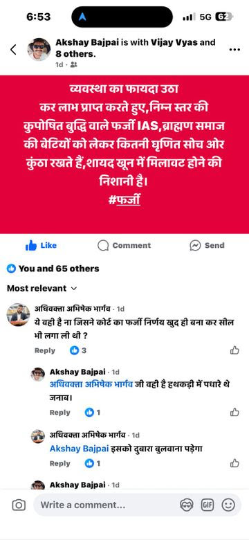 समझौते के बाद भी चल रहे विवाद सूत्रों के अनुसार, वर्मा और युवती के बीच आपसी समझौता हो चुका है, हालांकि कुछ मामलों में समझौता लंबित है। ब्राह्मणों पर वर्मा की हालिया विवादित टिप्पणी के बाद जिला न्यायालय के वकीलों ने कड़ा विरोध जताया। इसी दौरान युवती सोशल मीडिया पर आईएएस वर्मा के समर्थन में दिखी, जिसके बाद वह अभिभाषक समुदाय के निशाने पर आ गई। पूर्व अभिभाषक संघ अध्यक्ष दिनेश पांडे ‘गुरु’ सहित कई वकीलों ने युवती को “अवसरवादी”, “मौकापरस्त” बताते हुए पोस्ट कर विरोध दर्ज किया।