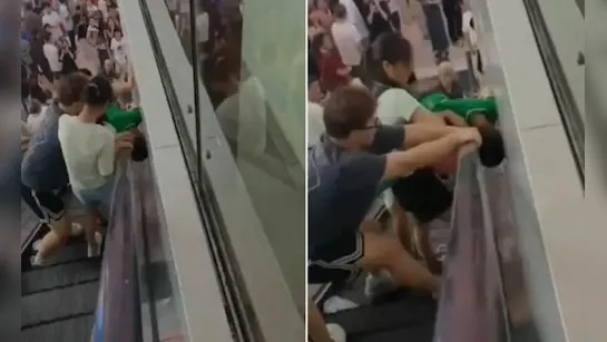 लड़के ने एस्केलेटर और दीवार के बीच फंसाया सिर (Boy trapped in escalator video)