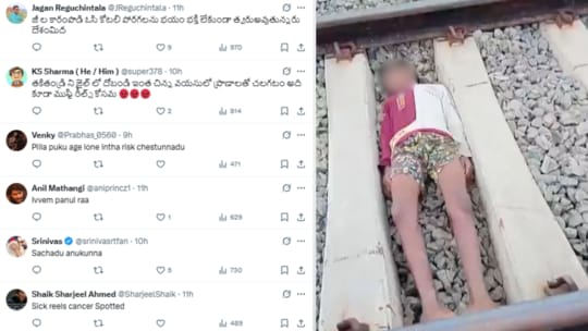 @TeluguScribe ने पोस्ट के कैप्शन में लिखा- Reel के लिए जान से खेल जा रहा है। ओडिशा के बौध जिले के पुरुनापानी में रेल की पटरियों पर लेटा एक लड़का रील के प्रति आसक्त है। उसके दोस्तों ने इसे अपने फोन पर रिकॉर्ड कर लिया, जिसके बाद अधिकारियों ने तीन नाबालिगों को हिरासत में ले लिया है और जांच कर रहे हैं।