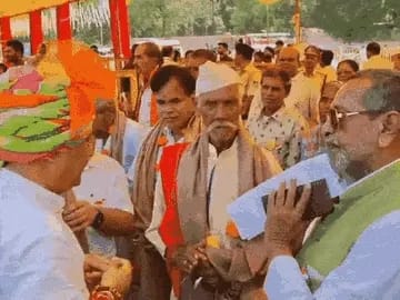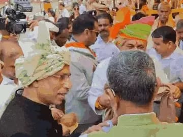 मंत्री इंदर सिंह परमार हाथों में शॉल लेकर संतोष भारती का सम्मान करने आगे बढ़े। उनके साथ कलेक्टर सुधीर कोचर भी थे। भारती ने सम्मान कराने से मना कर दिया। फिर दोनों मनाते रहे।