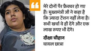 इधर, मंगलवार को बंठिया अस्पताल में धरमराज कॉलोनी की रहने वाली भर्ती दीक्षा चौहान से दैनिक भास्कर ने बातचीत की थी। जिसमें उसने बताया था कि हम लोग चौराहे से शिक्षक नगर की तरफ आ रहे थे। स्कूटी मेरी फ्रेंड चला रही थी। उसके पीछे एक और फ्रेंड थी। मैं लास्ट में बैठी थी। वहां शोरूम के सामने एक ट्रक हमको टक्कर देता हुआ साइड से होता हुआ आगे चला गया। आगे उसने गाड़ियों को टक्कर मार दी।