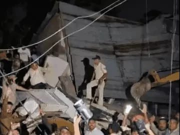 तीन मंजिला मकान गिरने का वीडियो सामने आया है। लोग भागते नजर आ रहे हैं।