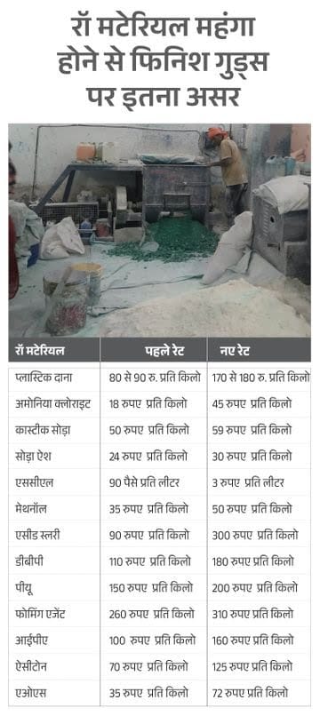 एसोसिएशन ऑफ फुटवियर के प्रेसीडेंट गिरीश पंजाबी ने बताया कि एमपी की आर्टिफिशियल लेदर फुटवियर इंडस्ट्री पूरी तरह पेट्रोकेमिकल रॉ मटेरियल पर निर्भर है। इसके कारण फिनिश गुड्स 20–25% तक महंगे होंगे। रॉ मटेरियल 50% तक महंगा हो चुका है। 100 की चीज 150–180 तक पहुंच गई है।