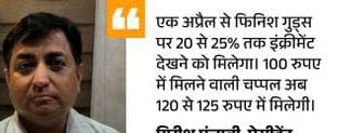 पुराना स्टॉक मार्च तक चलेगा। इसके बाद 1 अप्रैल से नए रेट लागू होंगे। अप्रैल से जूते-चप्पल, प्लास्टिक, केमिकल, सर्फ, सोडा और साबुन महंगे होंगे।