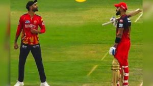 Virat Kohli Banter With Harpreet Brar: डबल हेडर के तहत बीते कल (20 अप्रैल 2025) आईपीएल में कुल दो मुकाबले खेले गए. पहले मुकाबले में पंजाब किंग्स की भिड़ंत रॉयल चैलेंजर्स बेंगलुरु के साथ हुई, जबकि दूसरे मुकाबले में मुंबई इंडियंस की टीम ने चेन्नई सुपर किंग्स के साथ दो-दो हाथ किया. पहले मुकाबले में आरसीबी की टीम बाजी मारने में कामयाब रही. मैच के हीरो विराट कोहली रहे. मैच के दौरान वह अपने पुराने लय में नजर आए. इसके अलावा जब उन्हें मौका मिला तो वह विपक्षी टीम के खिलाफ अग्रेशन दिखाने से भी नहीं चुके.