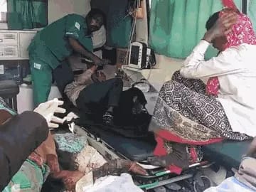एम्बुलेंस में घायलों को शुरुआती इलाज दिया गया।