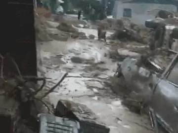 दार्जिलिंग में लैंडस्लाइड के बाद आसपास के बाजार में मलबा आ गया। कई गाड़ियां भी दब गईं।