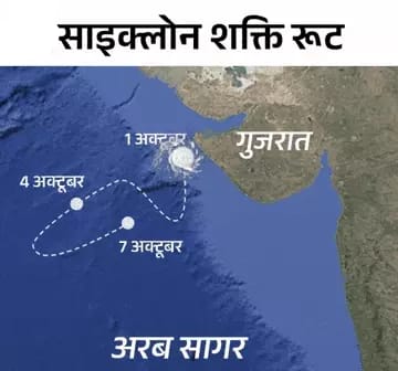 अरब सागर में साइक्लोन शक्ति, महाराष्ट्र-गुजरात में अलर्ट अरब सागर में उठा पहला चक्रवात शक्ति गंभीर चक्रवाती तूफान में बदल गया है। मौसम विभाग ने शनिवार को बताया कि यह तूफान गुजरात के द्वारका से 420 किमी दूर समुद्र में एक्टिव है। इसकी वजह से 100 किमी प्रति घंटा की रफ्तार से हवाएं चल रही हैं।